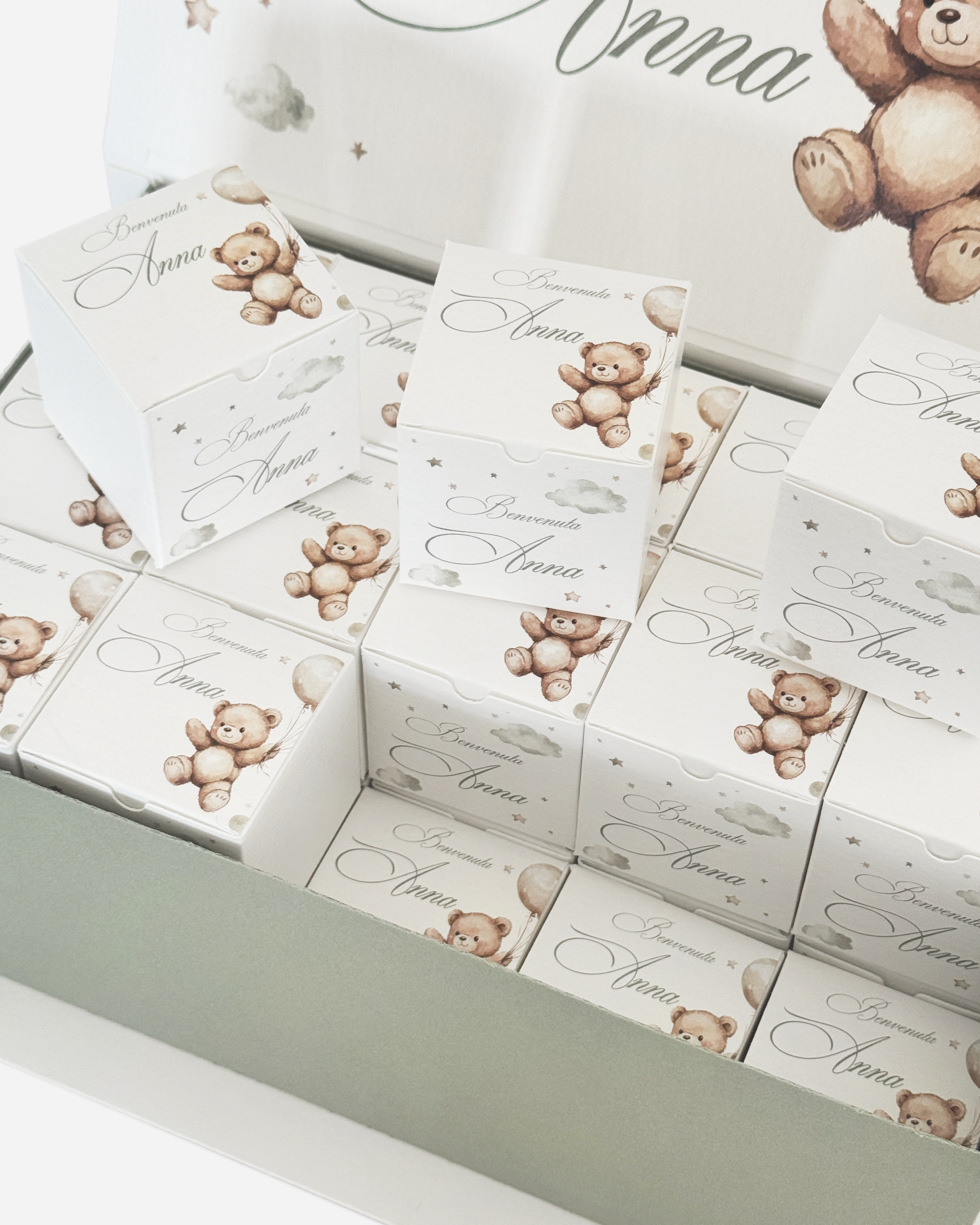 Box Porta Confetti Personalizzabile – 30 Scatoline Orsetto Verde