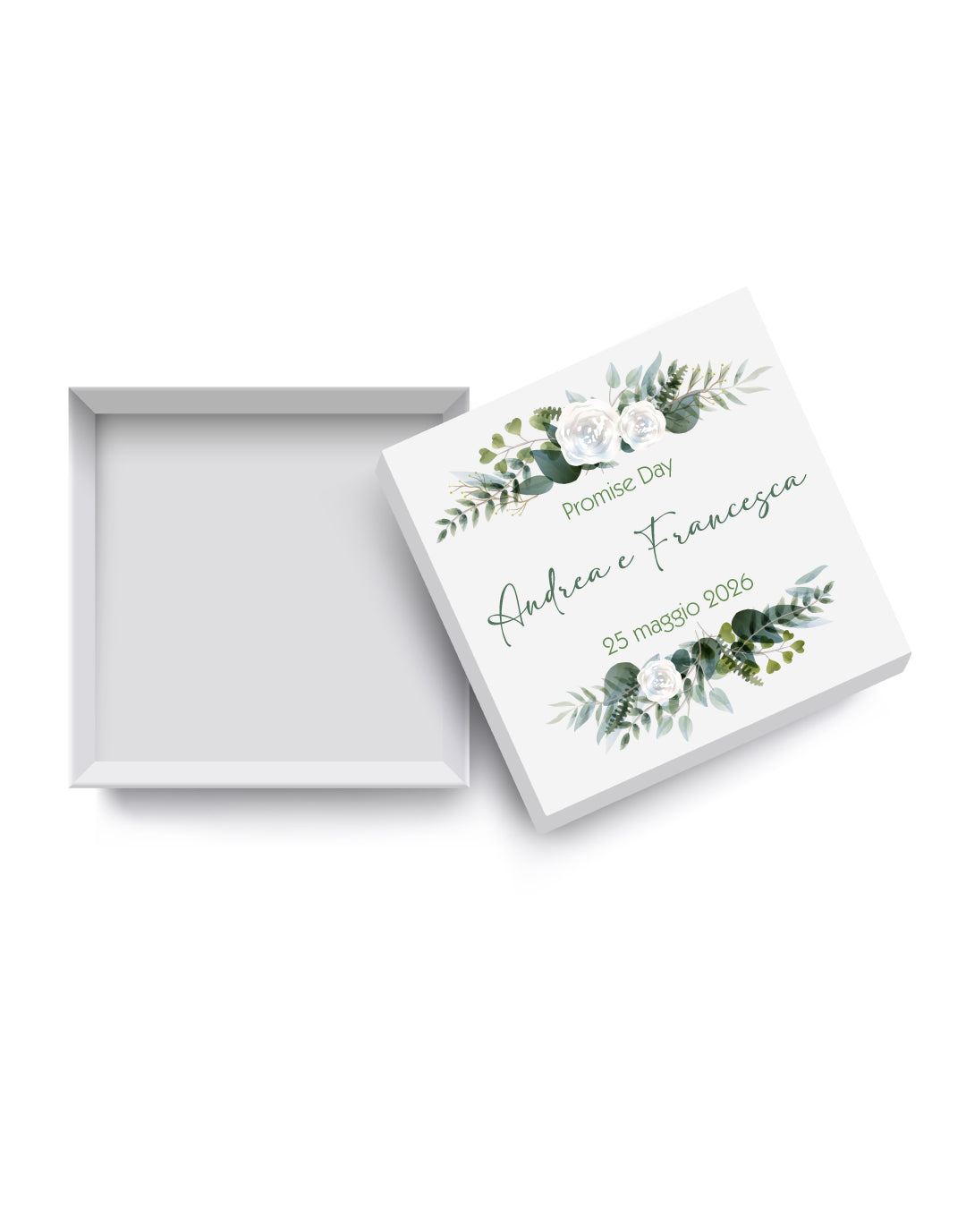 Ogni scatolina può essere personalizzata con una frase speciale come “La Promessa di…”, i nomi e la data trasformandola in un ricordo unico, elegante e indimenticabile.