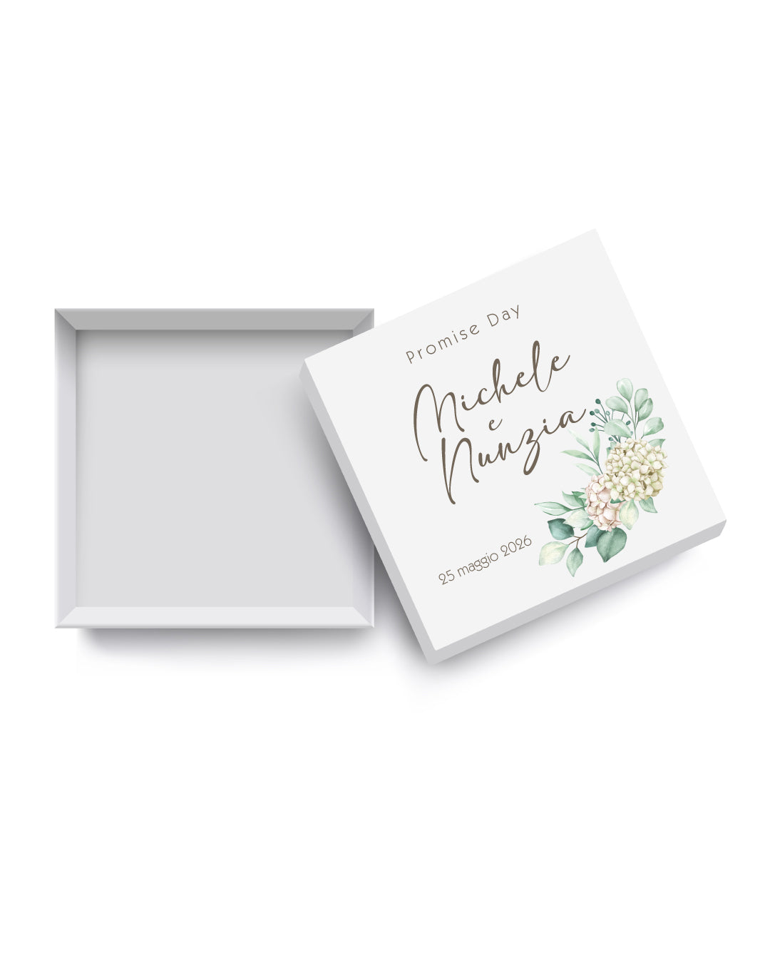Ogni scatolina può essere personalizzata con una frase speciale come “La Promessa di…”, i nomi e la data trasformandola in un ricordo unico, elegante e indimenticabile.