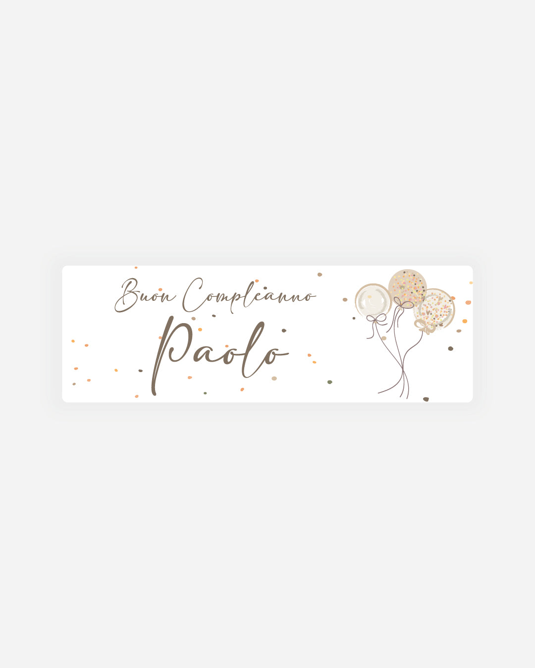Personalizzalo con una frase simbolica (come “Un giorno da ricordare”, “Happy Birthday”, “Festeggiamo insieme!”), il tuo nome e la data dell’evento.