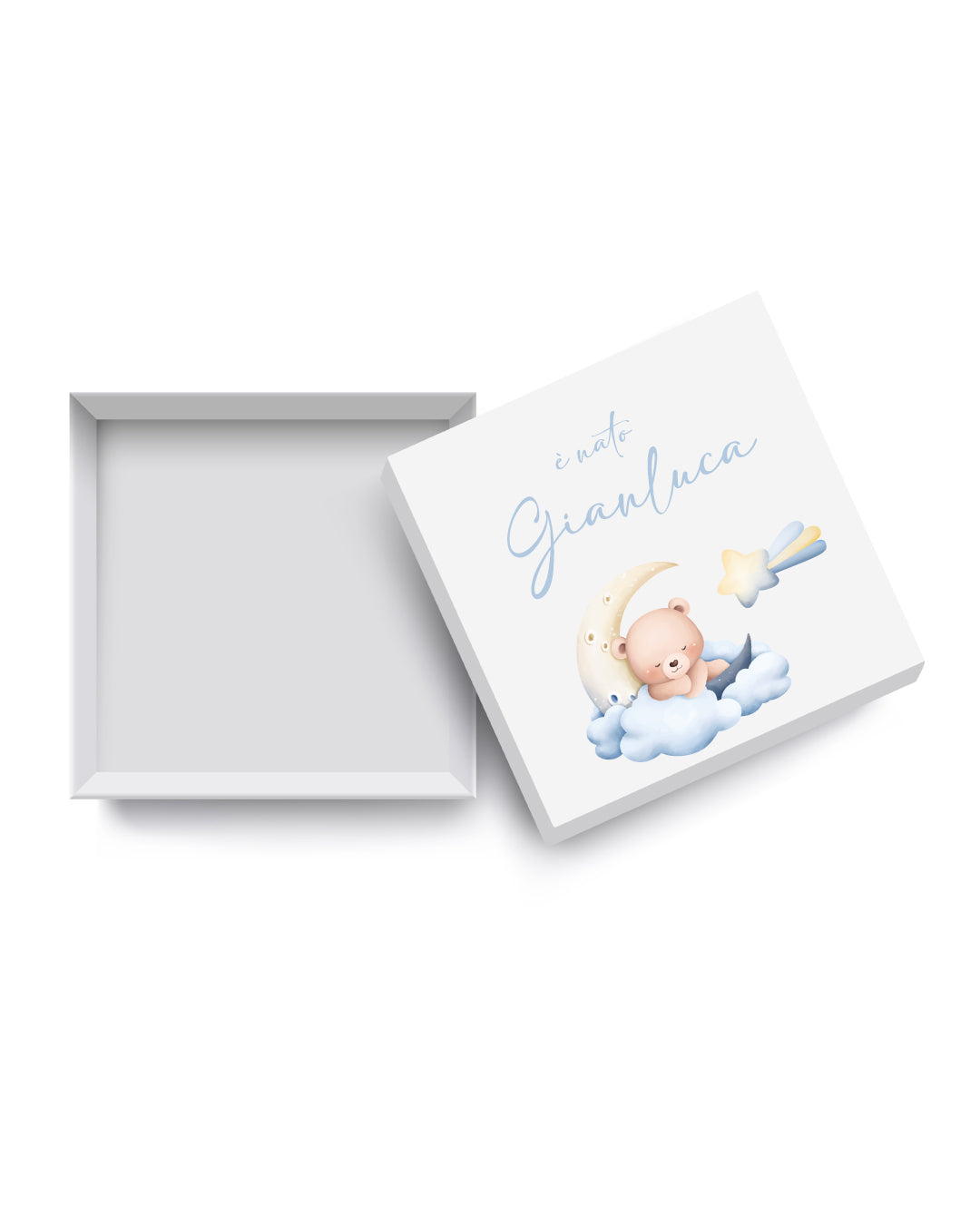 Ogni scatolina può essere personalizzata con una frase speciale come “Benvenuto/a” e il nome del bambino/a, trasformandola in un ricordo unico, elegante e indimenticabile.