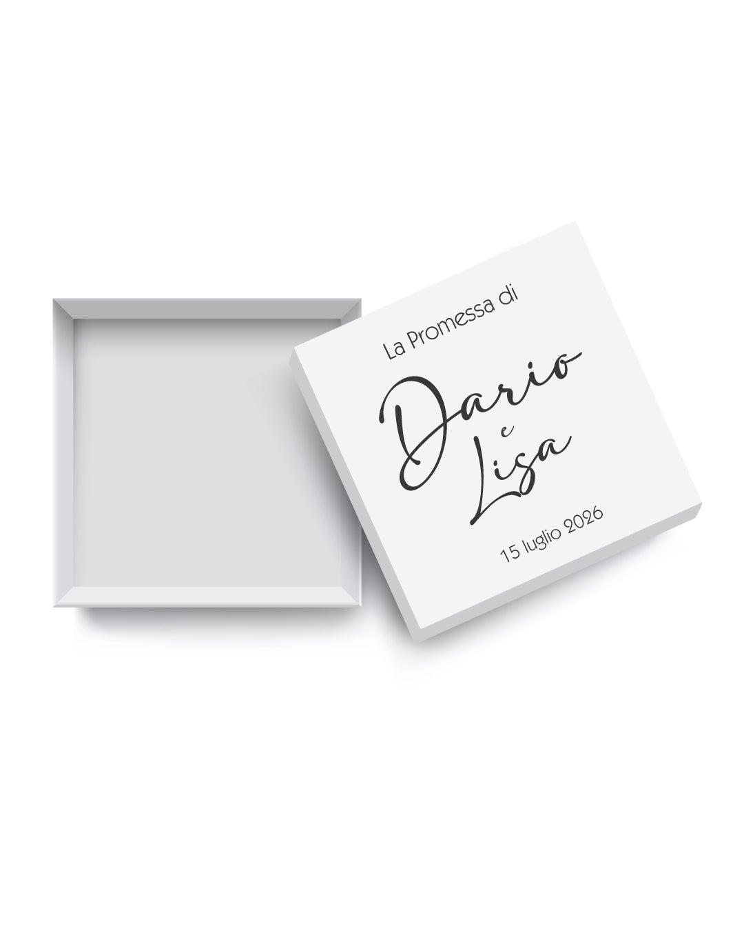 Ogni scatolina può essere personalizzata con una frase speciale come “La Promessa di…”, i nomi e la data trasformandola in un ricordo unico, elegante e indimenticabile.